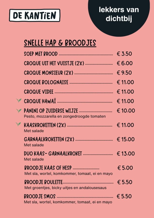 • Take-away: dagelijks verse broodjes, soepen en maaltijden om af te halen.